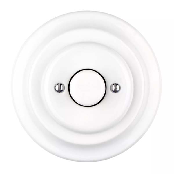 Regulador conmutado fabricado en porcelana blanca con marco también de porcelana para instalación empotrada.