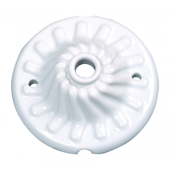 Roseta conexión de porcelana. Embellecedor para el techo con salida de cables. Cubre la conexión eléctrica. Ideal para el montaje de lámparas en suspensión. Útil como florón de techo.