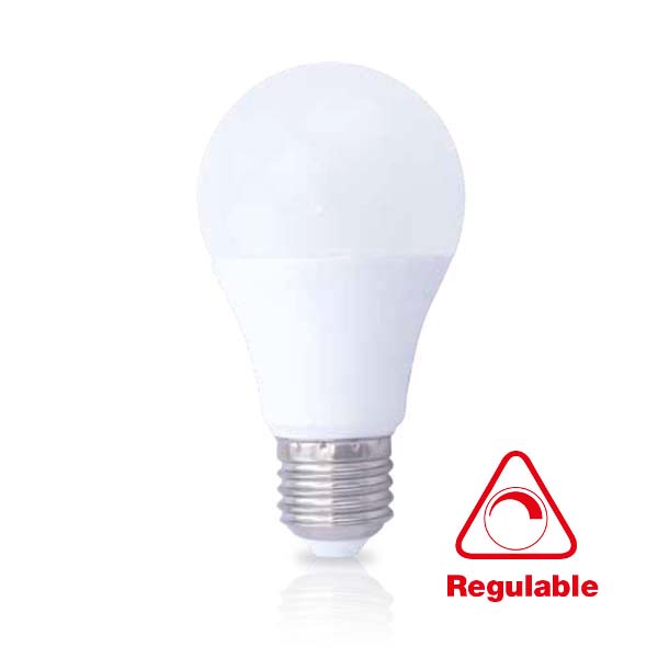 Bombilla LED estándar regulable. Compatible con reguladores de intensidad convencionales (dimmer). Consumo de solo 11W, proporciona una luz superior a una bombilla tradicional de unos 70W (1200 Lumens).