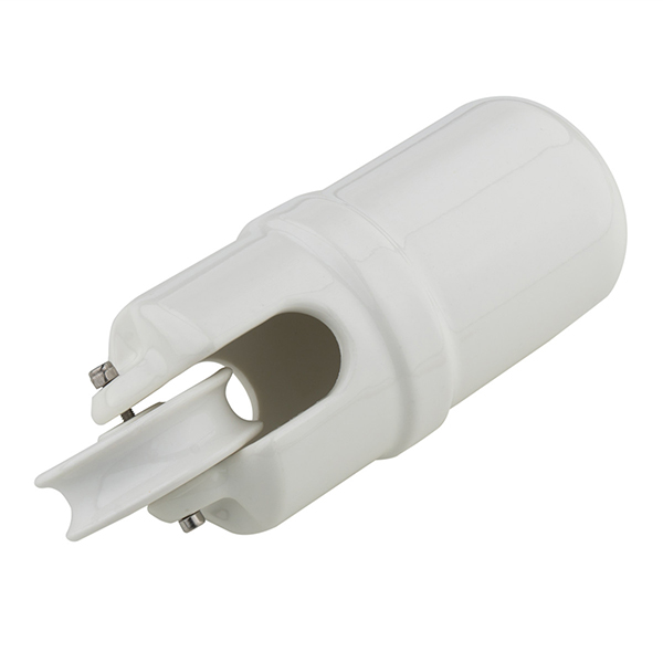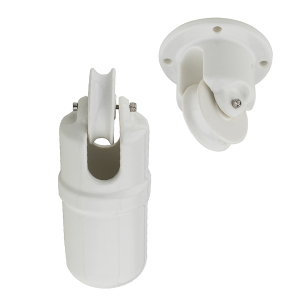 Sistema de contrapeso, fabricado en porcelana blanca para montar una lámpara “sube-baja”. Consta de dos accesorios, uno para fijar al techo, con rueda incorporada, a modo de polea y otro para hacer de contrapeso y poder graduar la altura de una lámpara, también incorpora rueda para el cable.