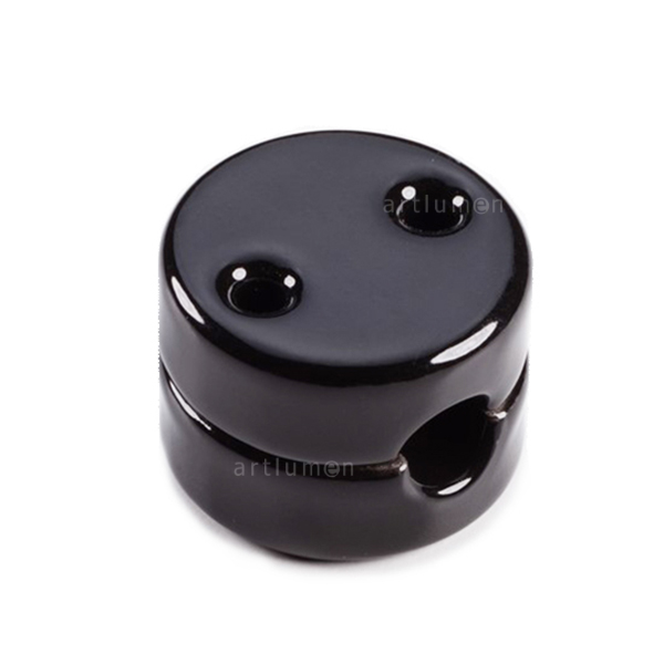 Sujeta cables para pared o techo fabricado en porcelana de color negra. Complemento ideal para instalaciones vistas utilizando cables decorativos textiles.