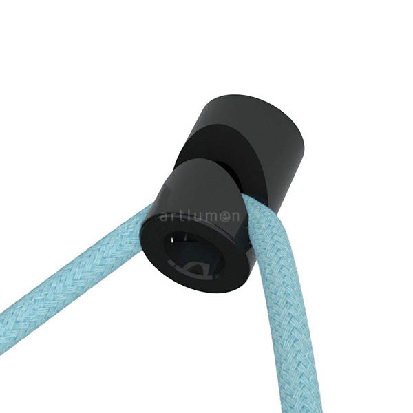 Accesorio para fijar al techo y poder pasar el cable y derivarlo en forma de “V”. Fabricado en porcelana de color negra. El cable se inserta lateralmente y queda sujeto por el propio peso. Para instalar en techo o pared y conducir el cable dandole formas o creando dibujos.