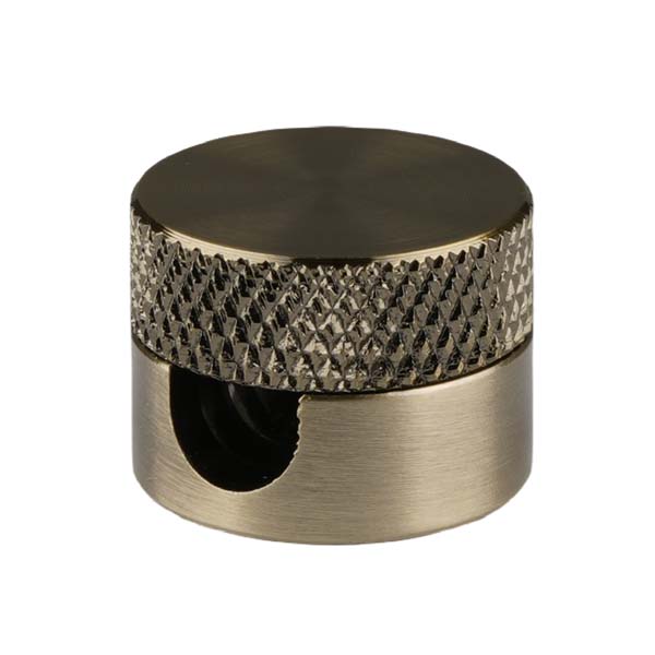 Prensacables fabricado en aluminio, acabado dorado envejecido. Para usar de pasa cables decorativos en instalaciones vistas por pared o techo.
