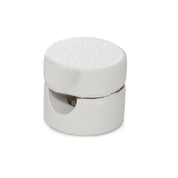 Pieza de metal de color blanco para fijar el cable a la pared o techo. Una de las partes, la base, dispone de un orificio para ser atornillado a pared o techo. La otra parte, es la tapa que rosca y sujeta el cable eléctrico.