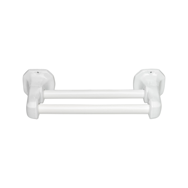 Toallero de porcelana con dos barras de porcelana, para dos toallas con espacio útil de 45cm. Soportes y barras de porcelana. Reproducciones auténticas de los años 20 al 50, fabricadas en porcelana con el mismo blanco natural que los originales. Son perfectos para aportar el acento rústico a cualquier baño.
