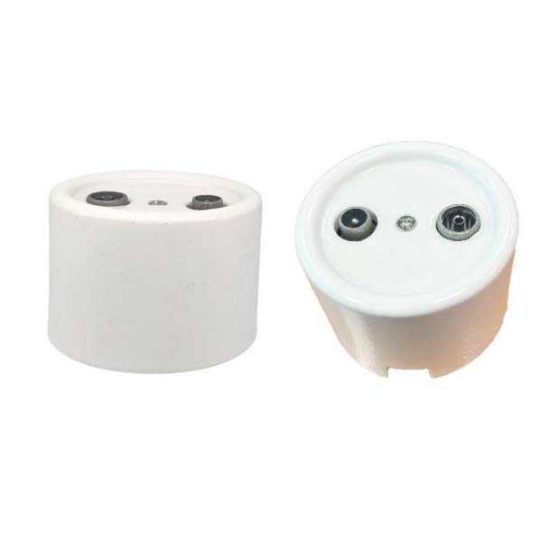 Toma de televisión fabricada en porcelana de color blanco para su instalación en superficie.