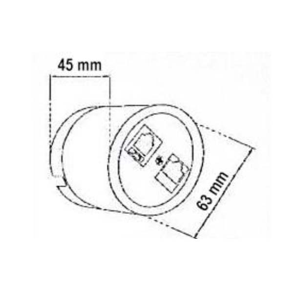 Base de superficie fabricada en porcelana color negro, con un conector para toma de teléfono (RJ-11) y otro conector para toma de datos (RJ-45).