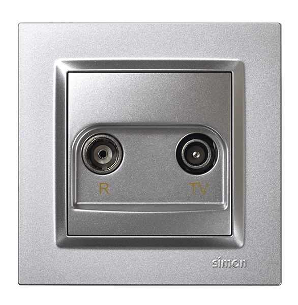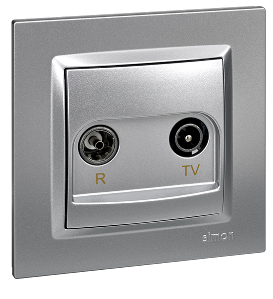 Base de televisión (TV) y radio (FM) de color aluminio para instalación empotrada.
