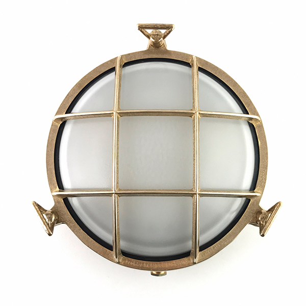 Lámpara muy robusta, de aspecto industrial, fabricada en latón.