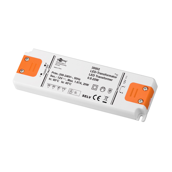Driver transformador para alimentar LED a 12V con un máximo de carga de 15W. De tamaño compacto y muy plano (16mm altura)