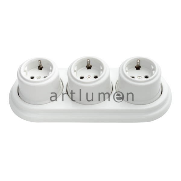 Tres enchufes y base porcelana