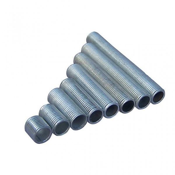 Tija de hierro roscada exteriormente con paso interior para cable eléctrico de 6,8mm de diámetro.