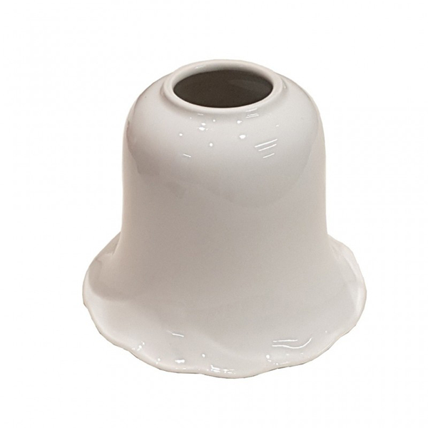 Tulipa de porcelana blanca opal. El faldón tiene unos suaves rizos. Ideal para acoplar a colgantes de techo o lámparas de brazo en pared.