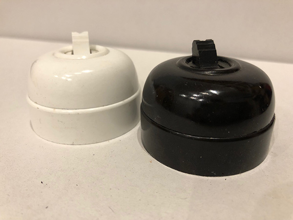 Interruptor tipo “tumbler”. Replica de mecanismos dimbler antiguos. Estilo sencillo y práctico. Encendido/apagado mediante palanca basculante. Para instalación en superficie.