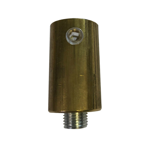 Pieza fabricada en latón usada como remate embellecedor de cables de gran diámetro, especialmente cables de cuerda o de yute. Tiene una entrada para el cable, con un espacio hueco de 16mm. El prensa-cables lateral de plástico es ajustable. En su otro extremo tiene una entrada con rosca hembra, de paso 10/100, para tubo roscado de ese paso (la pieza lleva uno incluido). Permite ser roscado a ganchos, argollas, florones de techo, portalámparas, etc.