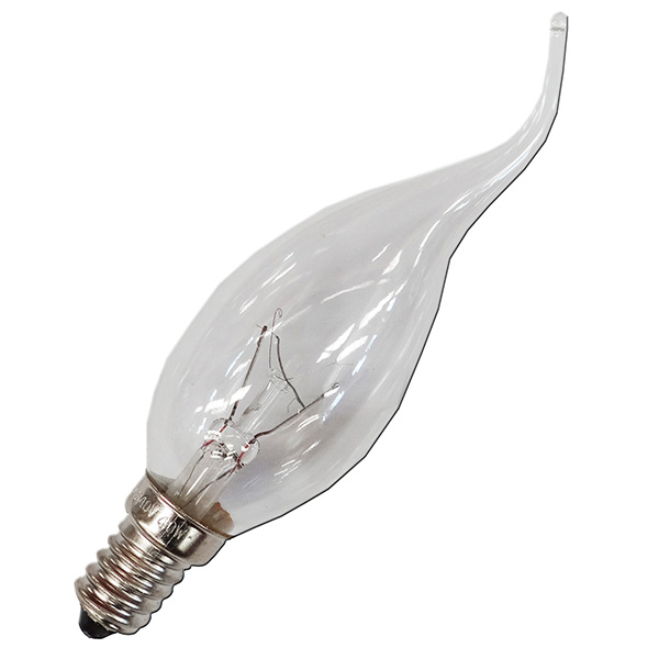 Bombilla vela muy decorativa gracias a su cristal acabado en punta torcida (“golpe de viento”).