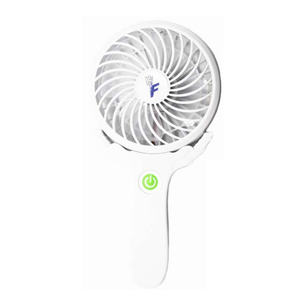 Potente ventilador portátil de 3 velocidades alimentado con batería recargable por USB. Tiene dos posiciones: de mano y de sobremesa. 2 horas de carga proporcionan hasta 2 horas de uso continuo.