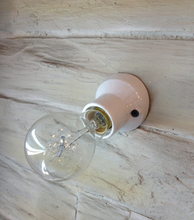 Portalámparas de zócalo curvo fabricado en porcelana esmaltada. Un aplique retro, muy minimalista, réplica de los clásicos portalámparas utilizados en los años 50.