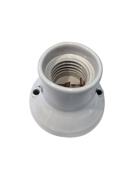Portalámparas de zócalo recto fabricado en porcelana esmaltada. Un aplique retro, muy minimalista, réplica de los clásicos portalámparas utilizados en los años 50.